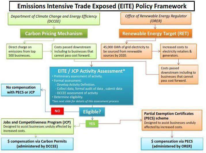 - ‘assistance’ provided to industries for certain ‘emissions intensive trade exposed’ (EITE) activities